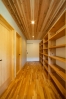 信濃町産杉を生かした造作カウンターや本棚/有名作家のアートな壁紙をアクセント